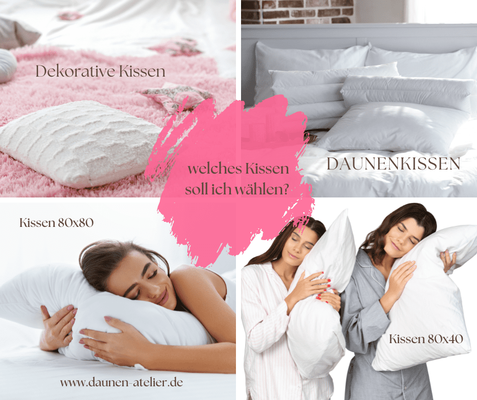 - Nach Füllung: • Daunen- und Federkissen – leicht, weich und sehr langlebig, z. B. aus Gänsedaunen.